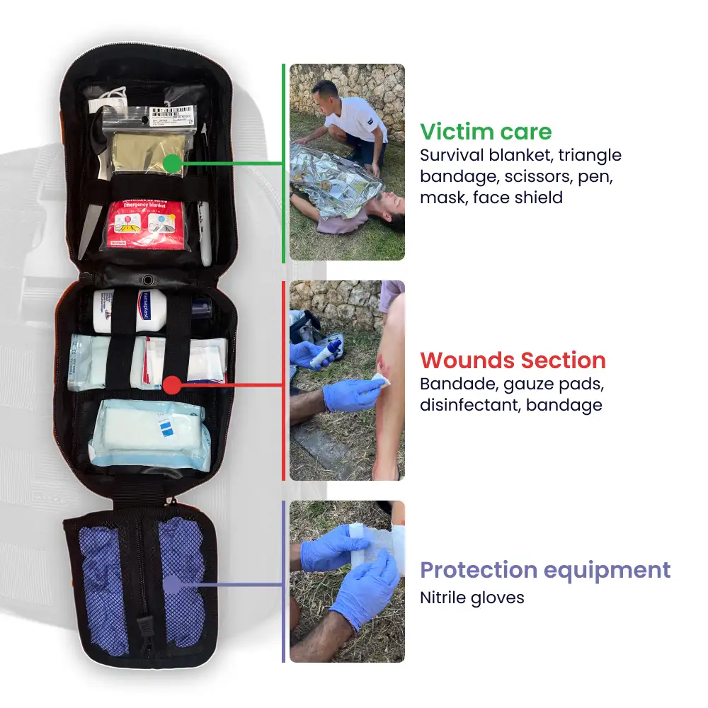 First time I order a first aid kit on internet. Very good value for the price. Thank you to the team for the message in the packet it’s really nice aha. If you have any questions just ask the team on whatsapp they reply really quick !